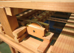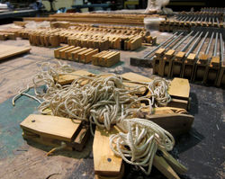 Puesta a punto de la maqueta interactiva de teatro clásico de la ESTAE, Terrassa. Comenzada hace 15 años y abandonada sin terminar. Reajuste de las poleas y barras, limpieza y construcción del proscenio.