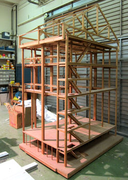 Restauración de maqueta de teatro clásico a escala 1:10. Construcción de partes sin terminar.